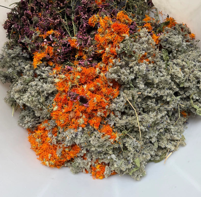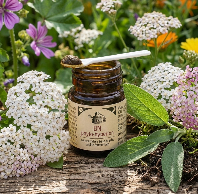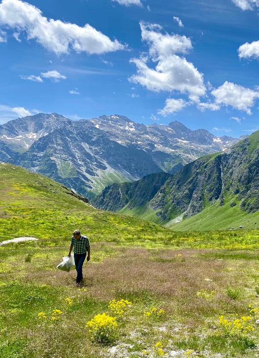 Le erbe principali provengono dai prati fioriti d’alta quota, dove i fiori melliferi arricchiscono la miscela di nettari, pollini e micronutrienti, derivanti dal lavoro instancabile delle api. Il composto comprende una selezione di erbe officinali spontanee e coltivate, tutte raccolte in alta montagna, note per il loro ricco profilo aromatico e fitochimico.